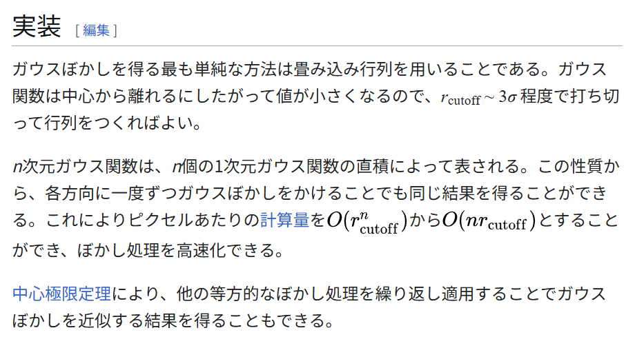 Wikipedia の「ガウシアンぼかし」のページには「ぼかし処理を繰り返し適用することでガウスぼかしを近似する結果を得ることもできる」と記載されていて、これは確かに成立する。