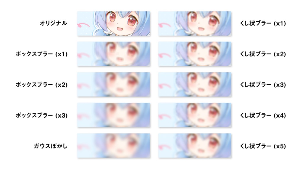 (※ ここではコムフィルタとの類似性から、仮にくし状ブラーと呼ぶことにする。)