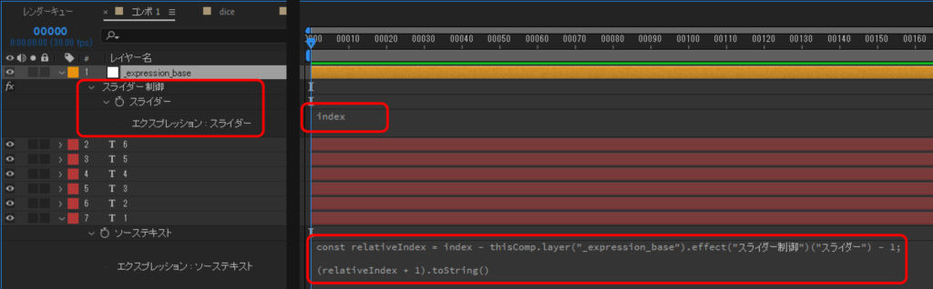 const relativeIndex = index - thisComp.layer("_expression_base").effect("スライダー制御")("スライダー") - 1;