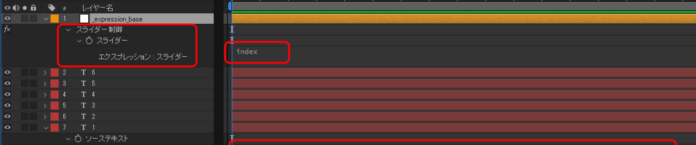 スライダー制御に index というエクスプレッションを追加します。