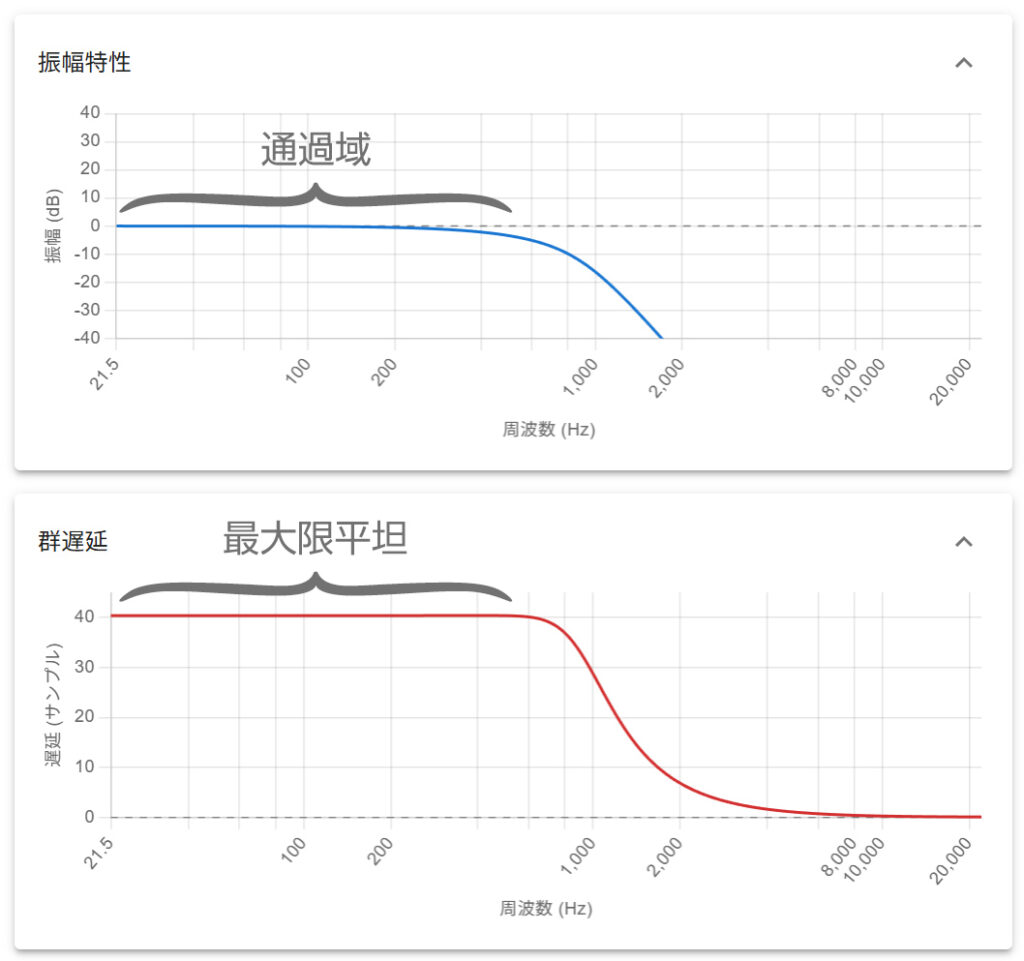 ただし、群遅延は最大限平坦ではないため、そのような特性が必要な場合には適さない。
