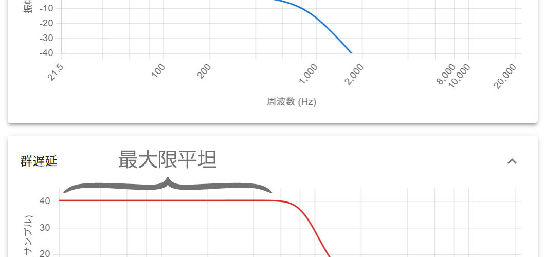 ただし、群遅延は最大限平坦ではないため、そのような特性が必要な場合には適さない。