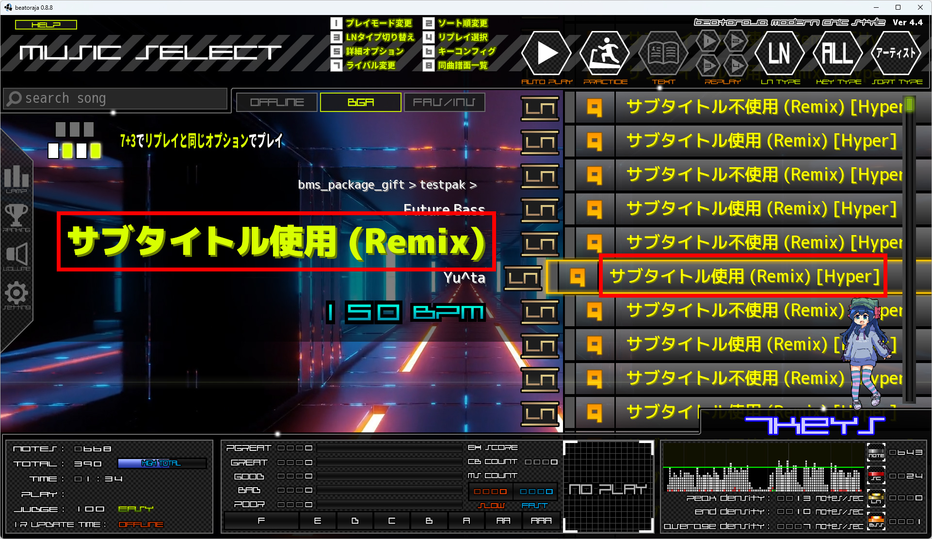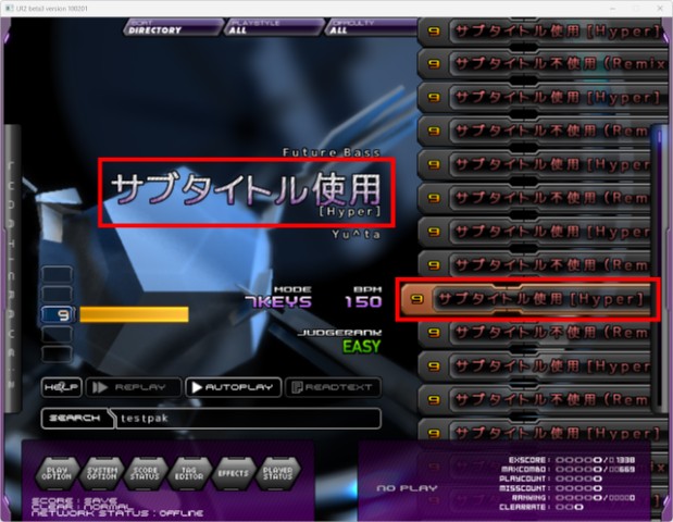 SUBTITLE を使うと、 (Remix) という表記が消えてしまっています。これは LR2 のバグだと考えられます。